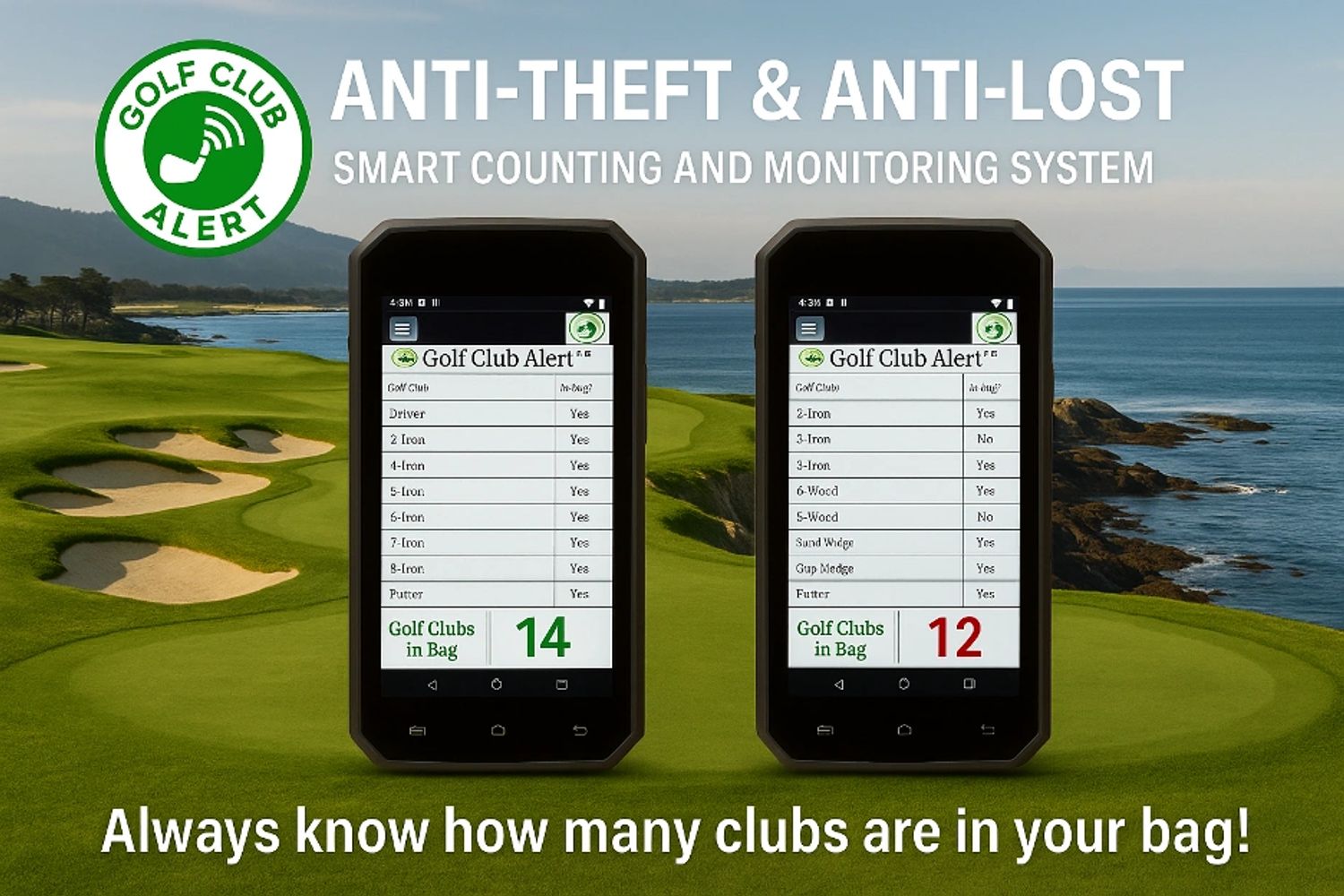 Golf Club Alert™ does the counting for you—so you can focus on your swing, not your clubs.